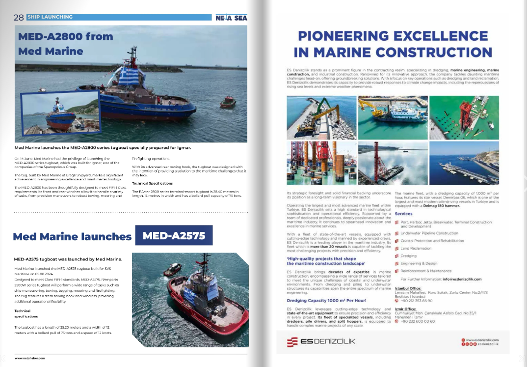 ES Denizcilik, 25 yılı aşkın deneyimiyle liman, iskele, rıhtım ve dalgakıran inşaatı, deniz dibi tarama, kıyı koruma ve su altı boru hattı gibi birçok hizmet sunuyor. Erol Demirbaş, şirketin geçmişte zorlu projelere imza attığını vurgulayarak, “Her projemizde kaliteyi en üst seviyede tutarak sektöre yön veriyoruz. Teknolojiyi yakından takip ediyor ve en son yenilikleri operasyonlarımıza entegre ederek projelerimizin verimliliğini artırıyoruz” ifadelerini kullandı.